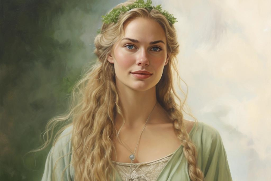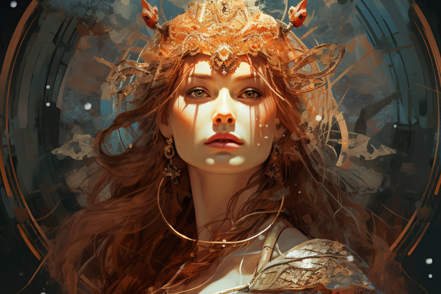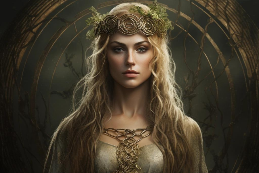 Severská bohyně Frigg, manželka Ódina a vládkyně nebes. Symbol lásky, osudu a mateřské moudrosti v severské mytologii.